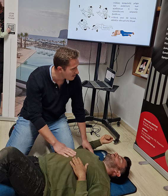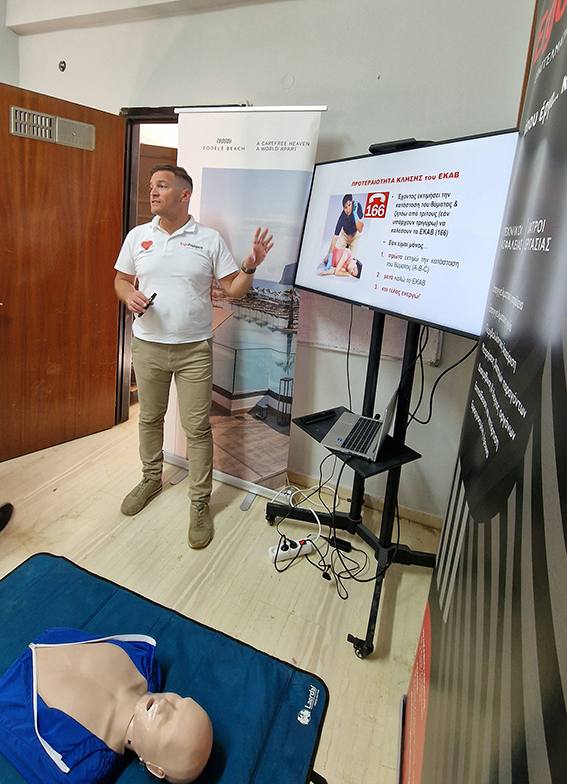 Το ξενοδοχείο Fodele Beach & Water Park Holiday Resort, σε συνεργασία με την εταιρεία ERGOPROLIPSIS, διοργάνωσε σεμινάριο Πρώτων Βοηθειών και Χρήσης Αυτόματου Εξωτερικού Απινιδωτή (AED) στην αίθουσα της τοπικής κοινότητας.
