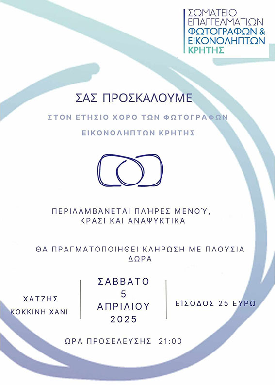 Το Σάββατο το βράδυ 5/4 θα πραγματοποιηθεί και χορός του Συλλόγου Κρήτης στην περιοχή Κοκκίνη Χάνι Ηρακλείου, πληροφορίες στην αφίσα :