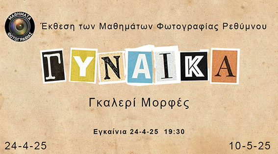 Μια ξεχωριστή έκθεση φωτογραφίας με θέμα τη “Γυναίκα” παρουσιάζουν τα Μαθήματα Φωτογραφίας Ρεθύμνου, στη γκαλερί “Μορφές”, προσκαλώντας το κοινό σε ένα εικαστικό ταξίδι με αφετηρία τον φακό και προορισμό τον ανθρώπινο πυρήνα της θηλυκότητας.
