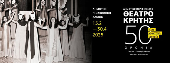 Ο Δήμος Χανίων, η Δημοτική Πινακοθήκη Χανίων και το Δημοτικό Περιφερειακό Θέατρο Κρήτης σας προσκαλούν στις παράλληλες δράσεις που πλαισιώνουν την επετειακή έκθεση «ΔΗΠΕΘΕ Κρήτης – 50 Χρόνια Θέατρο – Ένα Ζωντανό Αρχείο», σε επιμέλεια του Αντώνη Βολανάκη.