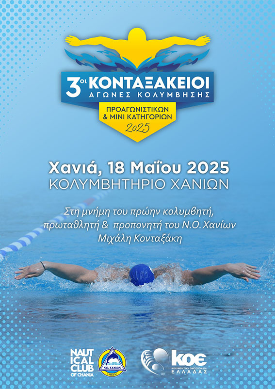 Ο Ναυτικός Όμιλος Χανίων διοργανώνει για τρίτη συνεχόμενη χρονιά τους «Κονταξάκειους Αγώνες Κολύμβησης», τιμώντας τη μνήμη του αείμνηστου αθλητή και προπονητή του, Μιχάλη Κονταξάκη. Η φετινή διοργάνωση θα πραγματοποιηθεί την