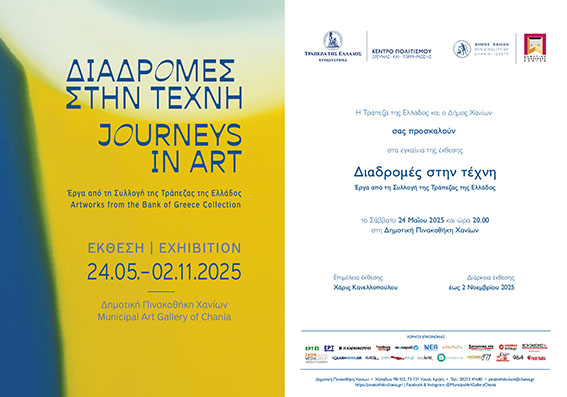 Η Δημοτική Πινακοθήκη Χανίων και το Κέντρο Πολιτισμού, Έρευνας και Τεκμηρίωσης της Τράπεζας της Ελλάδος παρουσιάζουν την έκθεση «Διαδρομές στην τέχνη. Έργα από τη Συλλογή της Τράπεζας της Ελλάδος».