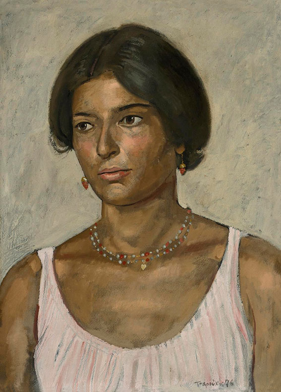 3. Γιάννης Τσαρούχης, Προσωπογραφία της Δέσποινας με κολιέ και σκουλαρίκια, 1976. Συλλογή έργων τέχνης Τράπεζας της Ελλάδος.