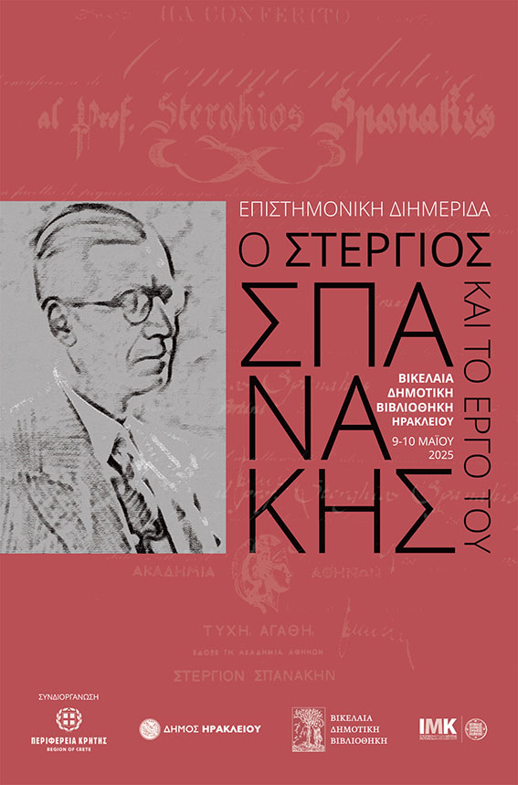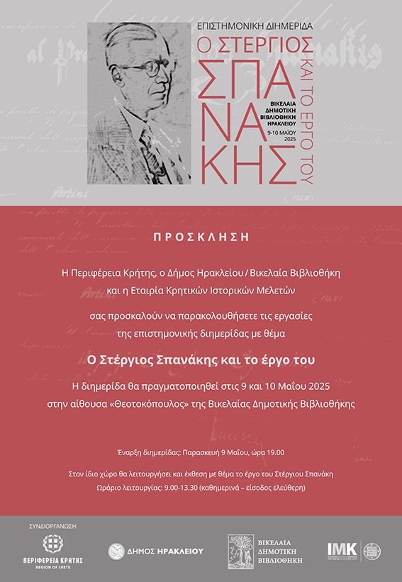 Επιστημονική Διημερίδα με τίτλο «Ο Στέργιος Σπανάκης και το έργο του» και έκθεση αφιερωμένη στο έργο του σπουδαίου συγγραφέα και ερευνητή συνδιοργανώνεται από την Περιφέρεια Κρήτης, τον Δήμο Ηρακλείου, τη Βικελαία Δημοτική Βιβλιοθήκη και το Ιστορικό Μουσείο Κρήτης στις