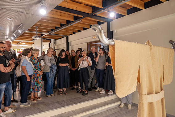 Η ξενάγηση ανέδειξε τις πολλαπλές αναγνώσεις της έκθεσης: από τη σωματικότητα και τη ρευστότητα της ταυτότητας, μέχρι τη βιωσιμότητα στη μόδα και τη θέση του σώματος ως μέσο έκφρασης και διαμαρτυρίας.