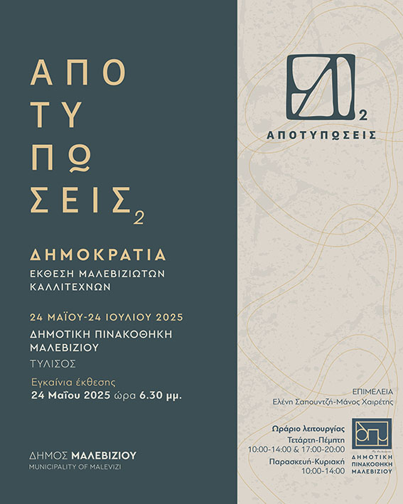 Εγκαίνια: Σάββατο 24/05/2024 και ώρα 18:30 στη Δημοτική Πινακοθήκη Μαλεβιζίου στην Τύλισο