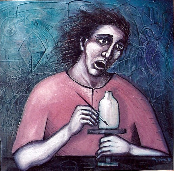 Όλα αυτά που κουβαλούσα μέσα μου – οι εμπειρίες, τα συναισθήματα, οι εσωτερικές εντάσεις – τα εξέφρασα μέσα από τη ζωγραφική. Σαν καλλιτέχνης, εκφράζεσαι όχι με λόγια αλλά μέσα από το έργο σου. Ποτέ δεν ήμουν άνθρωπος του λόγου· ήμουν πάντα της εικόνας, της πράξης, της έκφρασης μέσα από τη δημιουργία. Έτσι, τα έργα μου εκείνη την περίοδο είχαν μεγάλη συναισθηματική φόρτιση και μου το έλεγαν αυτό: τα έβρισκαν σκοτεινά, απαισιόδοξα, ακόμα και φοβιστικά. Ήταν όμως η δική μου αλήθεια, η ανάγκη να εξωτερικεύσω όσα κουβαλούσα μέσα μου.
