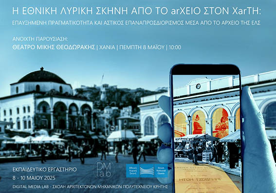 Η Εθνική Λυρική Σκηνή (ΕΛΣ) σε συνεργασία με το Εργαστήριο Ψηφιακών Μέσων (DmLab) της Σχολής Αρχιτεκτόνων Μηχανικών του Πολυτεχνείου Κρήτης, διοργανώνει εκπαιδευτικό εργαστήριο με τίτλο