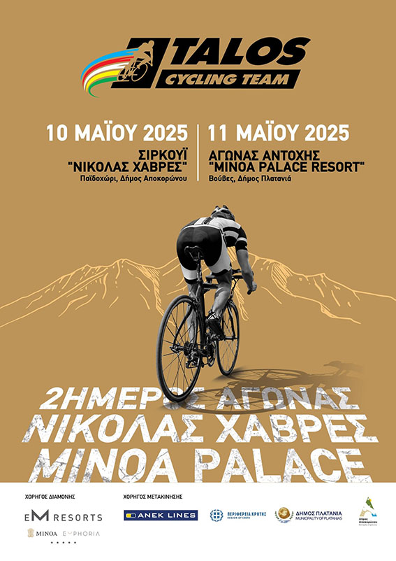 Ο Δήμος Πλατανιά, σε συνδιοργάνωση με τον Ποδηλατικό Όμιλο Χανίων ΤΑΛΩΣ–ANEK Lines και με την έγκριση της Ελληνικής Ομοσπονδίας Ποδηλασίας, συνδιοργανώνουν την