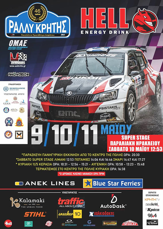 Το Ηράκλειο Κρήτης ετοιμάζεται να υποδεχτεί το τριήμερο 9-11 Μαΐου 2025 τον δεύτερο γύρο του Πανελλήνιου Πρωταθλήματος Ράλλυ Ασφάλτου, καθώς ο Αθλητικός Όμιλος Κρήτης διοργανώνει το «46ο Ράλλυ Κρήτης», το οποίο μετρά επίσης στο Κύπελλο Ράλλυ Κρήτης.
