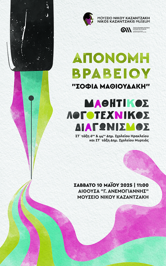 Το Μουσείο Νίκου Καζαντζάκη με τιμή και συγκίνηση απονέμει το Βραβείο «Σοφία Μαθιουδάκη» για τον μαθητικό λογοτεχνικό διαγωνισμό με θέμα