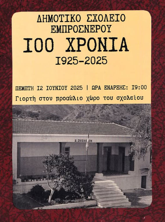Αυτή η εκατονταετής πορεία του σχολείου είναι άρρηκτα συνδεδεμένη με την ιστορία και τις θυσίες των ανθρώπων του Εμπρόσνερου. Η επέτειος αυτή αποτελεί ευκαιρία για όλους μας να τιμήσουμε τη μνήμη τους και να αναλογιστούμε τη σημασία της εκπαίδευσης και της αντίστασης σε δύσκολες εποχές.