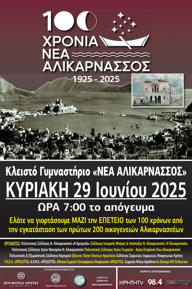 Το 2025 σηματοδοτεί έναν αιώνα ζωής για τη Νέα Αλικαρνασσό, την ιστορική προσφυγική συνοικία του Ηρακλείου. Συμπληρώνονται 100 χρόνια από τότε που οι πρώτες 200 οικογένειες από την Αλικαρνασσό της Μικράς Ασίας εγκαταστάθηκαν εδώ, κουβαλώντας στις αποσκευές τους αναμνήσεις, ελπίδες και έναν πολιτισμό που ρίζωσε και άνθισε σε νέο τόπο.
