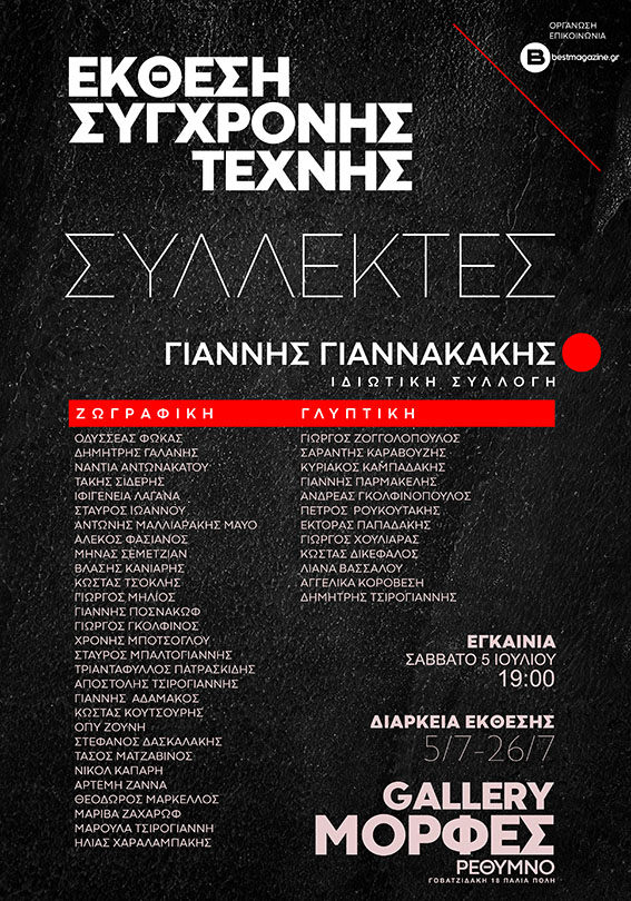 Η Γκαλερί ΜΟΡΦΕΣ παρουσιάζει την έκθεση σύγχρονης τέχνης “ΣΥΛΛΕΚΤΕΣ”, με έργα από τη συλλογή του Γιάννη Γιαννακάκη, φίλου και υποστηρικτή της γκαλερί.
