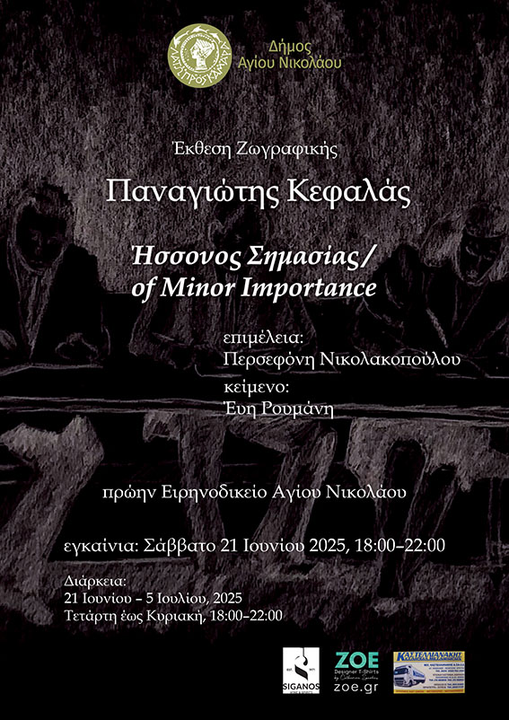 Στις 21 Ιουνίου 2025 στις 18:00 θα πραγματοποιηθούν τα εγκαίνια της έκθεσης του Παναγιώτη Κεφαλά με τίτλο «Ήσσονος Σημασίας».