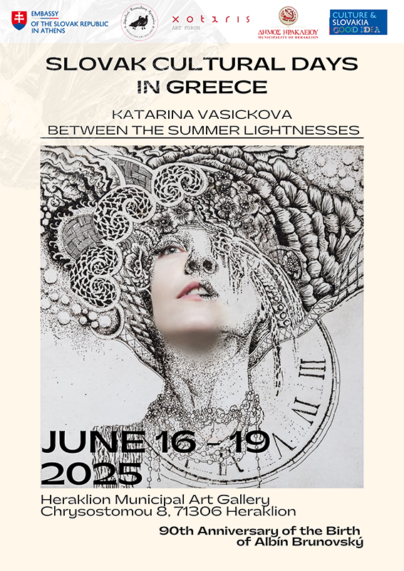 Σας προσκαλούμε στη Δημοτική Πινακοθήκη, Χρυσοστόμου 8 στο Ηράκλειο, όπου θα πραγματοποιηθεί από τις 16 έως τις 19 Ιουνίου 2025 μια μοναδική παρουσίαση της σλοβακικής τέχνης.