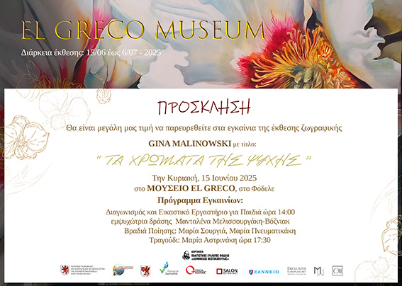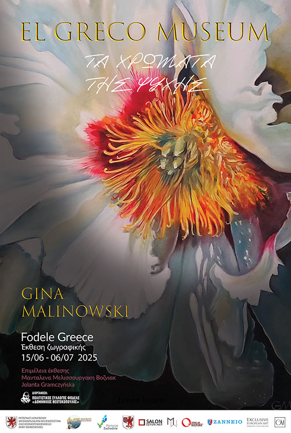 Στον χώρο του Μουσείου Ελ Γκρέκο, παρουσιάζουμε ένα απόσπασμα από το έργο της Τζίνα Μαλινόφσκι – μιας εξαιρετικής Πολωνής καλλιτέχνιδας και μιας γυναίκας με πολλά ταλέντα (πρόεδρος του Συλλόγου Stacja Kultura, διοργανώτρια και επιμελήτρια διεθνών εκθέσεων plein-air και τέχνης).