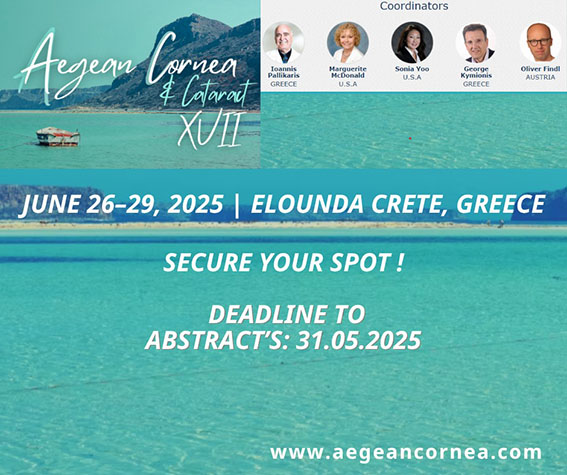 Για περισσότερες από τρεις δεκαετίες, το συνέδριο Aegean Cornea & Cataract βρίσκεται στην αιχμή της καινοτομίας, συγκεντρώνοντας κορυφαίους χειρουργούς του πρόσθιου ημιμορίου, ερευνητές και ειδικούς της βιομηχανίας από όλο τον κόσμο, με στόχο την ανταλλαγή γνώσεων και την παρουσίαση των τελευταίων εξελίξεων στους τομείς του κερατοειδούς, της διαθλαστικής και της χειρουργικής καταρράκτη.