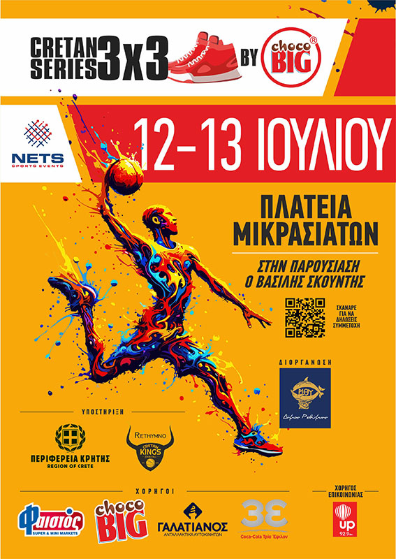 θα διεξαχθεί το 3×3 Basketball Cretan Series by choco BIG, το οποίο διοργανώνεται στο Ρέθυμνο για τρίτη διαδοχική σεζόν και αναμένεται να αποτελέσει σημείο αναφοράς στα θερινά δρώμενα της πόλης.