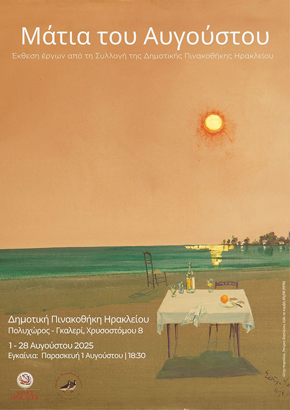 Με 60 έργα ζωγραφικής και χαρακτικής από την Συλλογή της, η Δημοτική Πινακοθήκη Ηρακλείου υποδέχεται τον Αύγουστο με μία θεματική έκθεση με τίτλο Μάτια του Αυγούστου. Την έκθεση θα εγκαινιάσει ο Δήμαρχος Ηρακλείου Αλέξης Καλοκαιρινός, την