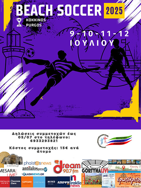 Η αντίστροφη μέτρηση τελείωσε και η πιο καλοκαιρινή γιορτή του ποδοσφαίρου στην άμμο ξεκινά! Ο Κόκκινος Πύργος φιλοξενεί το Beach Soccer 2025, μια τετραήμερη αθλητική διοργάνωση που έχει γίνει θεσμός, με τη σφραγίδα του Πολιτιστικού Συλλόγου Τυμπακίου.