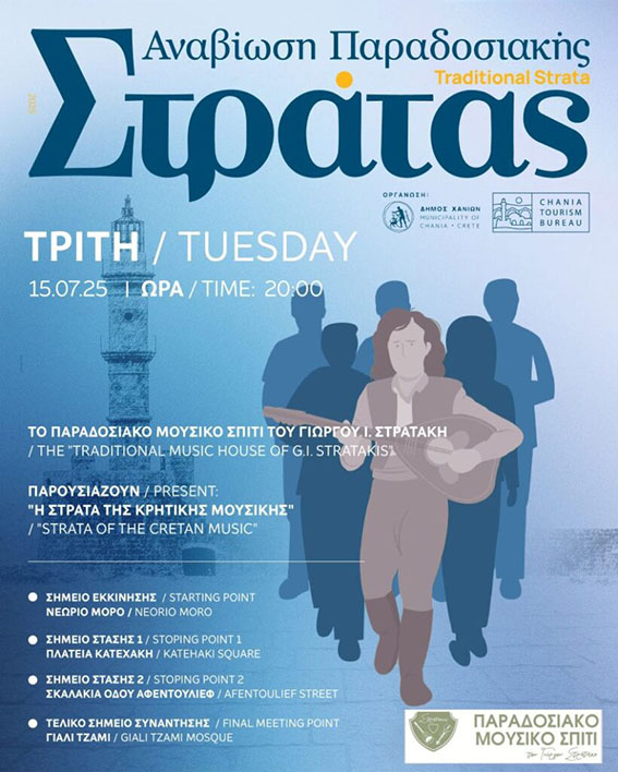 Ελάτε να μοιραστούμε τη χαρά και τις μουσικές και να ακούσετε για πρώτη φορά δημόσια, «της Στράτας το Τραγούδι», που δημιουργήθηκε ειδικά για την Παραδοσιακή Στράτα του Δήμου Χανίων, αυτό το μοναδικό θεσμό για τον τόπο μας.