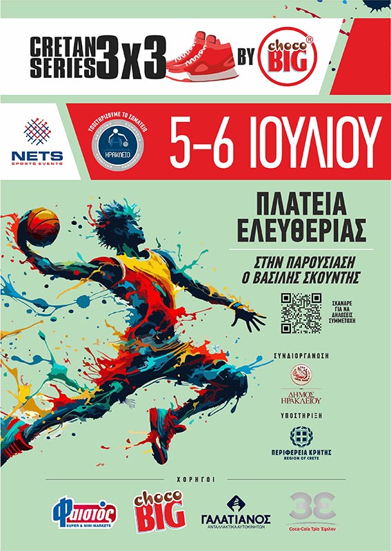 Μετά τις Μοίρες και τον Άγιο Νικόλαο, η πόλη του Ηρακλείου παίρνει τη σκυτάλη των Τουρνουά 3x3 Basketball Cretan Series by choco BIG του 2025, σε ένα πολυποίκιλο, ελκυστικό και φαντασμαγορικό και καινοτόμο φεστιβάλ το οποίο συνδυάζει την αθλητική ένταση με την ψυχαγωγία.