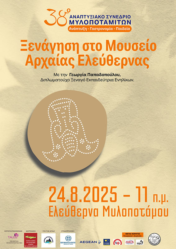 Στις 24 Αυγούστου, στις 11 το πρωί, θα πραγματοποιηθεί ξενάγηση στο Μουσείο Αρχαίας Ελεύθερνας από την Ξεναγό και Εκπαιδεύτρια Ενηλίκων Γεωργία Παπαδοπούλου.