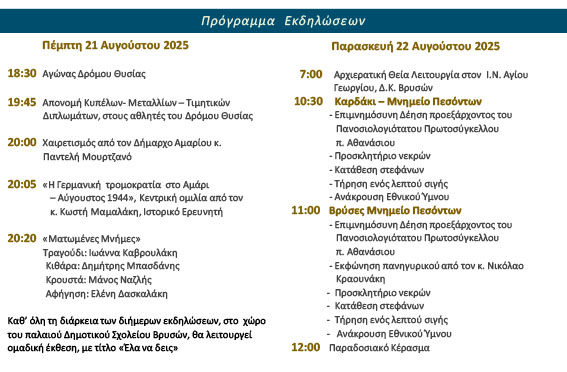 Βρύσες Αμαρίου | Πέμπτη 21 Αυγούστου 2025 | Έναρξη: 18:30