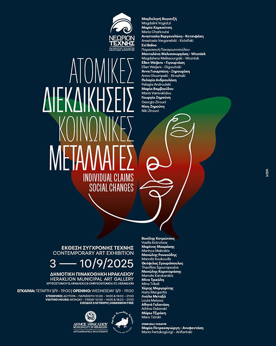 Ο Παγκρήτιος Σύλλογος Εικαστικών Δημιουργών «Νεώριον Τέχνης», σε συνδιοργάνωση με τον Δήμο Ηρακλείου, παρουσιάζει την ομαδική έκθεση με τίτλο