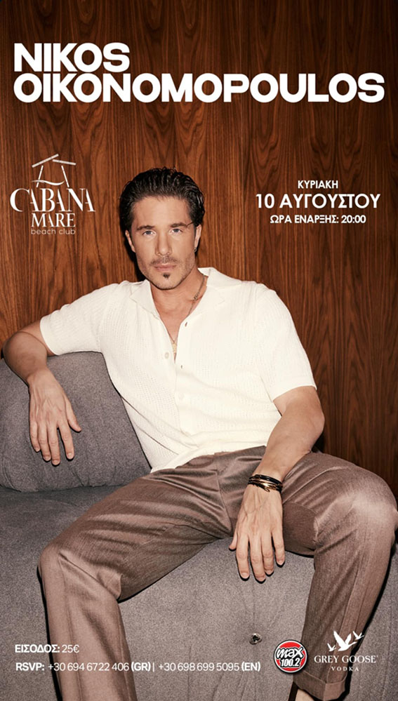 Η σκηνή του Cabana Mare Beach Club θα φιλοξενήσει έναν από τους πιο επιτυχημένους ερμηνευτές της γενιάς του, σε ένα live δίπλα στο κύμα, γεμάτο συναίσθημα, πάθος και τις μεγαλύτερες επιτυχίες του.