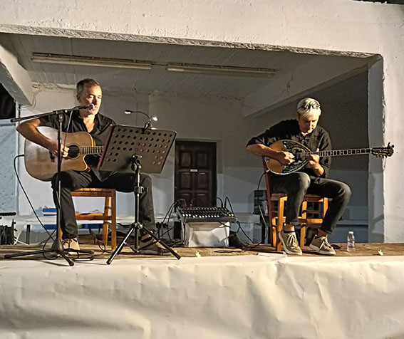 Η φιλόλογος Τόνια Μαλακωνάκη παρουσίασε με ιδιαίτερη ευαισθησία και γλαφυρότητα τα μελοποιημένα ποιήματα, ενώ ο Γιάννης Σίνης με την κιθάρα και τη φωνή του, μαζί με τον Μανώλη Φλεμετάκη στο μπουζούκι, «έντυσαν» μουσικά τα έργα, δημιουργώντας μια μοναδική ατμόσφαιρα.