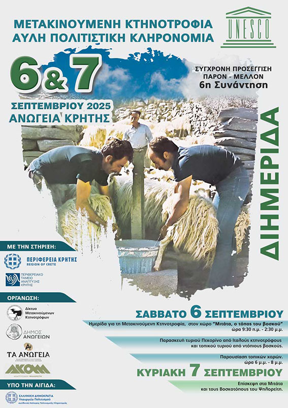 Η Περιφέρεια Κρήτης, ο Δήμος Ανωγείων και το Δίκτυο Μετακινούμενων Κτηνοτρόφων, σε συνεργασία με τον Γαλακτοκομικό Κτηνοτροφικό Αγροτικό Συνεταιρισμό Ανωγείων,