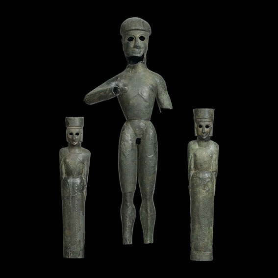Πρόκειται για τα πρωιμότερα γνωστά στον ελληνικό κόσμο σφυρήλατα αγαλμάτια, κατασκευασμένα από συναρμοσμένα φύλλα χαλκού πάνω σε ξύλινο πυρήνα που δεν διασώθηκε.