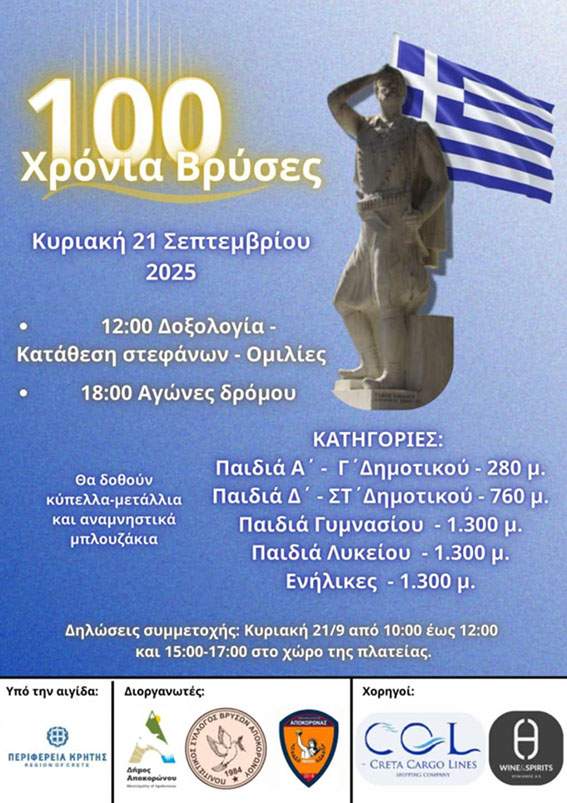 Οι Βρύσες Αποκορώνου γιορτάζουν φέτος έναν αιώνα ιστορίας και ζωής, με μια μεγάλη επετειακή εκδήλωση που θα πραγματοποιηθεί την