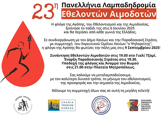 Την Τρίτη 9/9/2025 στις 19:30 ο Εθελοντισμός συναντάει την Παράδοση, σε μια ξεχωριστή Παραδοσιακή Στράτα που “αγκαλιάζει” την 23η Πανελλήνια Λαμπαδηδρομία Εθελοντών Αιμοδοτών.