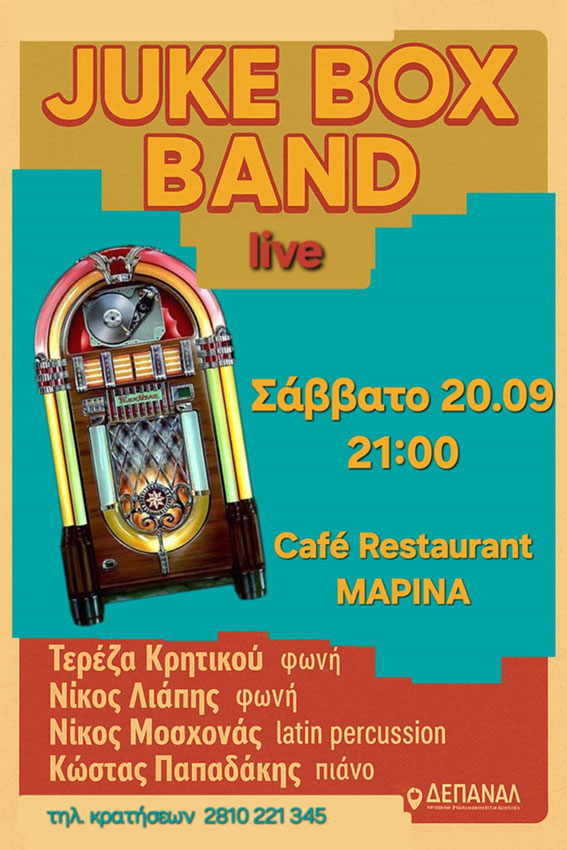 Από τα μελωδικά τραγούδια που σημάδεψαν γενιές μέχρι τα πιο χορευτικά κομμάτια που ξεσηκώνουν ακόμα και σήμερα, το πρόγραμμα των Juke Box Band καλύπτει ένα ευρύ φάσμα ήχων που όλοι αγαπήσαμε. Είναι η τέλεια αφορμή να ξαναζήσουμε στιγμές από τα παλιά και να τραγουδήσουμε όλοι μαζί κομμάτια που δεν σταμάτησαν ποτέ να μας συντροφεύουν.