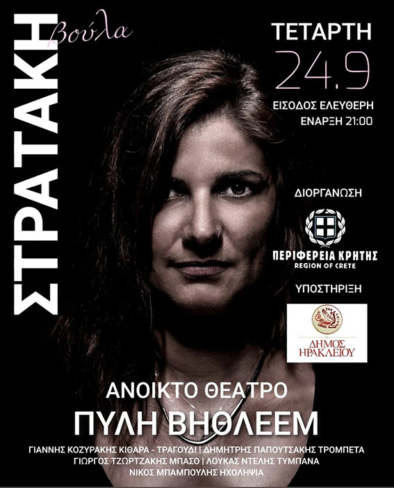 Η Περιφέρεια Κρήτης, σε συνεργασία με τον Δήμο Ηρακλείου, παρουσιάζει τη Βούλα Στρατάκη σε μια μοναδική μουσική βραδιά την