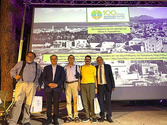 Ιδιαίτερο κύρος προσέδωσε στην επετειακή εκδήλωση η συμμετοχή των τριών κεντρικών ομιλητών, οι οποίοι παρουσίασαν πολύ ενδιαφέροντα ιστορικά και επιστημονικά στοιχεία: ο καθηγητής Βιολογίας του Πανεπιστημίου Κρήτης Στέργιο Πυρίντσος («Δημοτικός Κήπος, ένα ανοικτό βοτανικό εργαστήρι στο Ρέθυμνο»),