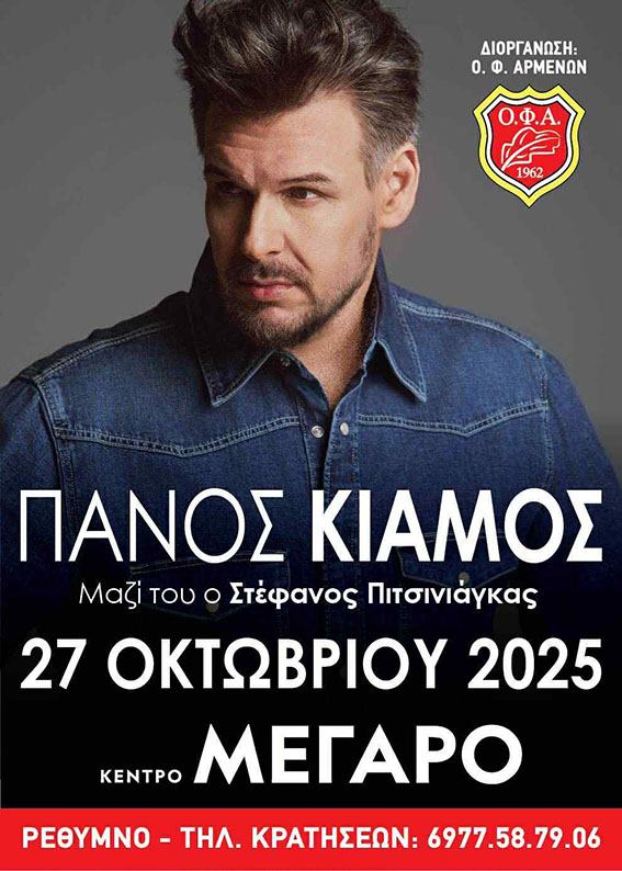 Ο Ο.Φ.Αρμένων σας προσκαλεί να ζήσετε μια μοναδική εμπειρία διασκέδασης στο Ρέθυμνο, σε ένα μουσικό γεγονός που δεν πρέπει να χάσετε.