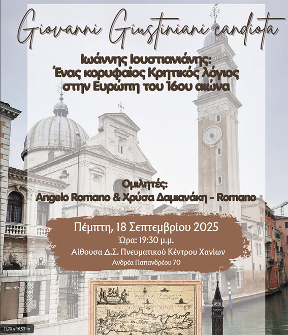 «Ιωάννης Ιουστινιάνης, ένας κορυφαίος Κρητικός λόγιος στην Ευρώπη του 16ου αιώνα».
