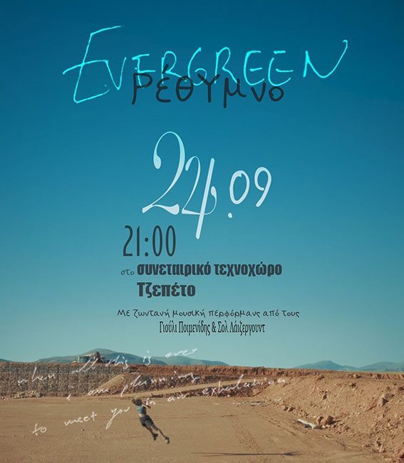 Η ταινία μικρού μήκους EVERGREEN (διάρκειας 18’) των Σοφίας Φιλίππου και Διόνυσου Σαββόπουλου ξεκινά την περιοδεία της στην Κρήτη με τρεις στάσεις: Χανιά, Ηράκλειο και Ρέθυμνο.