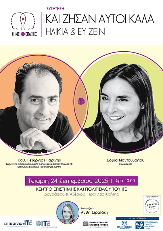 Η εκδήλωση αποτελεί μέρος μιας πρωτότυπης σειράς δημόσιων συζητήσεων του ΙΤΕ, όπου ένας/μία επιστήμονας του Ιδρύματος και ένα καταξιωμένο πρόσωπο από άλλον επαγγελματικό χώρο μοιράζονται τη δική τους οπτική πάνω στο ίδιο θέμα.