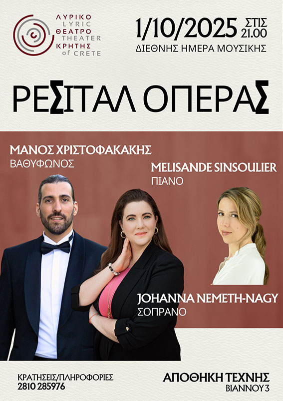 στην Αποθήκη Τέχνης (Βιάννου 3, Ηράκλειο), μια ξεχωριστή βραδιά αφιερωμένη στη λυρική τέχνη και στην παγκόσμια γλώσσα της μουσικής, με αφορμή τη Διεθνή Ημέρα Μουσικής.