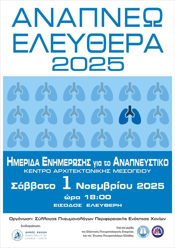 που διοργανώνει ο Σύλλογος Πνευμονολόγων Περιφερειακής Ενότητας Χανίων, με στόχο την ενημέρωση και ευαισθητοποίηση του κοινού γύρω από ζητήματα αναπνευστικής υγείας.