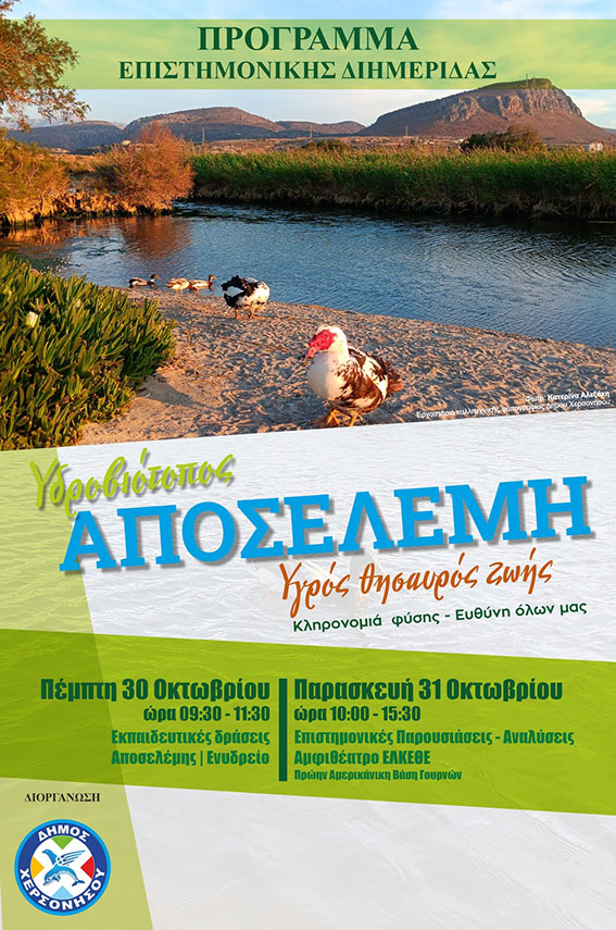 Με τίτλο «Υδροβιότοπος Αποσελέμη – Υγρός θησαυρός ζωής. Κληρονομιά φύσης – Ευθύνη όλων μας»,