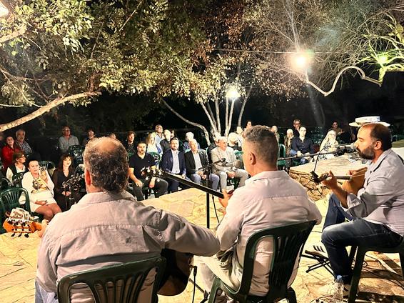 Την εκδήλωση πλαισίωσαν μουσικά οι Γ. Παξιμαδάκης (μπουζούκι), Ν. Σταματάκης (κιθάρα) και Δ. Κιαουλάς (μπουζούκι), μεταφέροντας τους παρευρισκόμενους σε μουσικές μνήμες της εποχής.