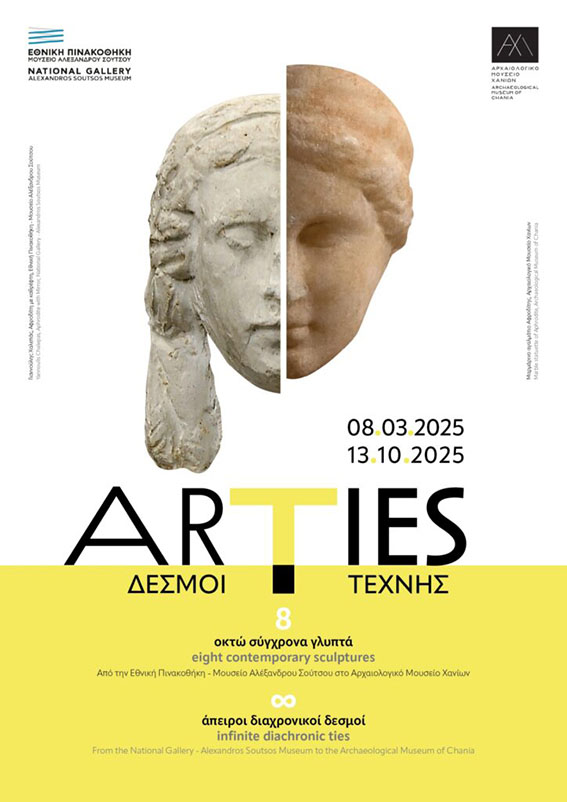 Η δράση Δεσμοί Τέχνης/ArTies εκδιπλώνει στην παρούσα Έκθεση τα χωρο-χρονικά εκείνα νήματα, τα οποία υφαίνουν το πολιτισμικό συνεχές της σύγχρονης καλλιτεχνικής δημιουργίας με τον εικονογραφικό πλούτο της αρχαιότητας, και αποτυπώνονται βαθιά χαραγμένα στα οκτώ σύγχρονα γλυπτά του Γιαννούλη Χαλεπά, της Μπέλλας Ραφτοπούλου, του Χρήστου Καπράλου και της Φρόσως Ευθυμιάδη-Μενεγάκη.