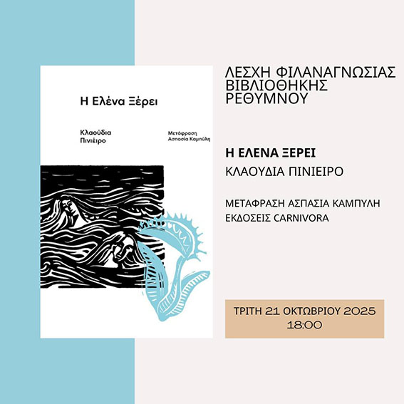 με αντικείμενο συζήτησης το μυθιστόρημα «Η Ελένα ξέρει» της Αργεντινής συγγραφέα Κλαούδια Πινιέιρο.