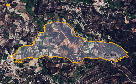 θα πραγματοποιηθεί πεζοπορία στο Μόδι, σε συνεργασία με την Κοινότητα και τον Πολιτιστικό Σύλλογο Μοδίου, με σημείο εκκίνησης την πλατεία έξω από τον Ιερό Ναό Μεταμόρφωσης του Σωτήρα.